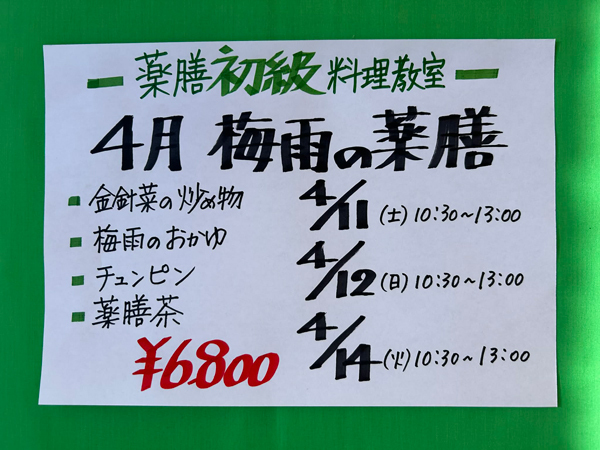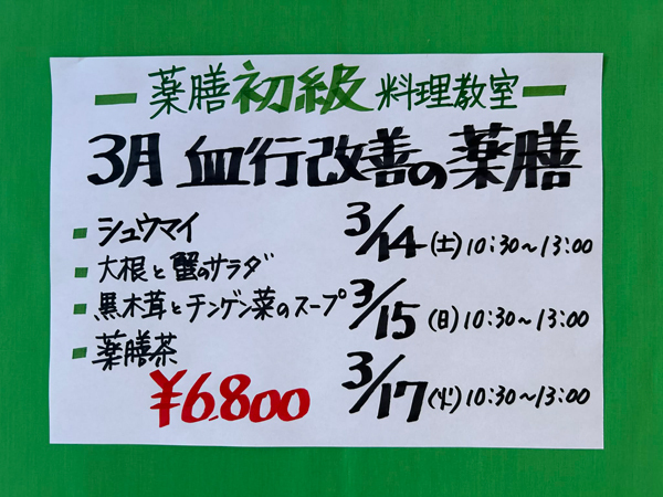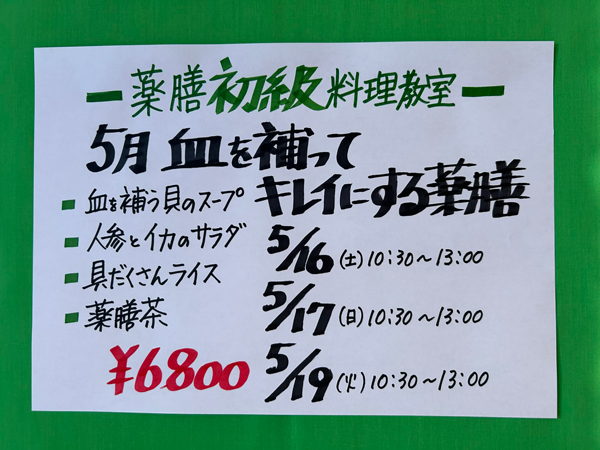 ☆ 対面薬膳初級お料理教室 ¥6800