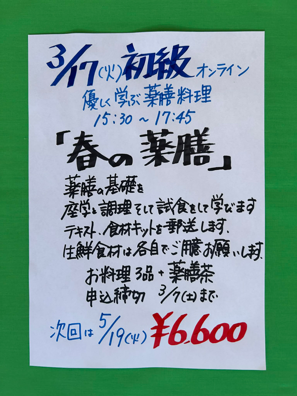 ☆ オンライン薬膳お料理教室 ¥6600